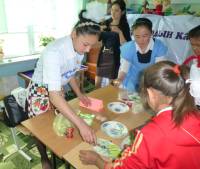 Воспитанники же школы-интерната №118 имени Дадана Султанова провели мастер-класс для своих сверстников из Карасуйской спецшколы-интерната для глухих детей. Закупив за свой счет необходимые материалы, воспитатель Айнура Шаимкулова вместе со своими учениками обучала детей с ограниченными возможностями премудростям приготовления салатов, бисероплетения, аппликации из цветной бумаги, изготовлению поделок из войлока. В дополнение к этому гости представили небольшой концерт, а один из них рассказал сказку с помощью листа ватмана, из которого на глазах изумленных зрителей складывал предметы, о которых говорилось в сказке.